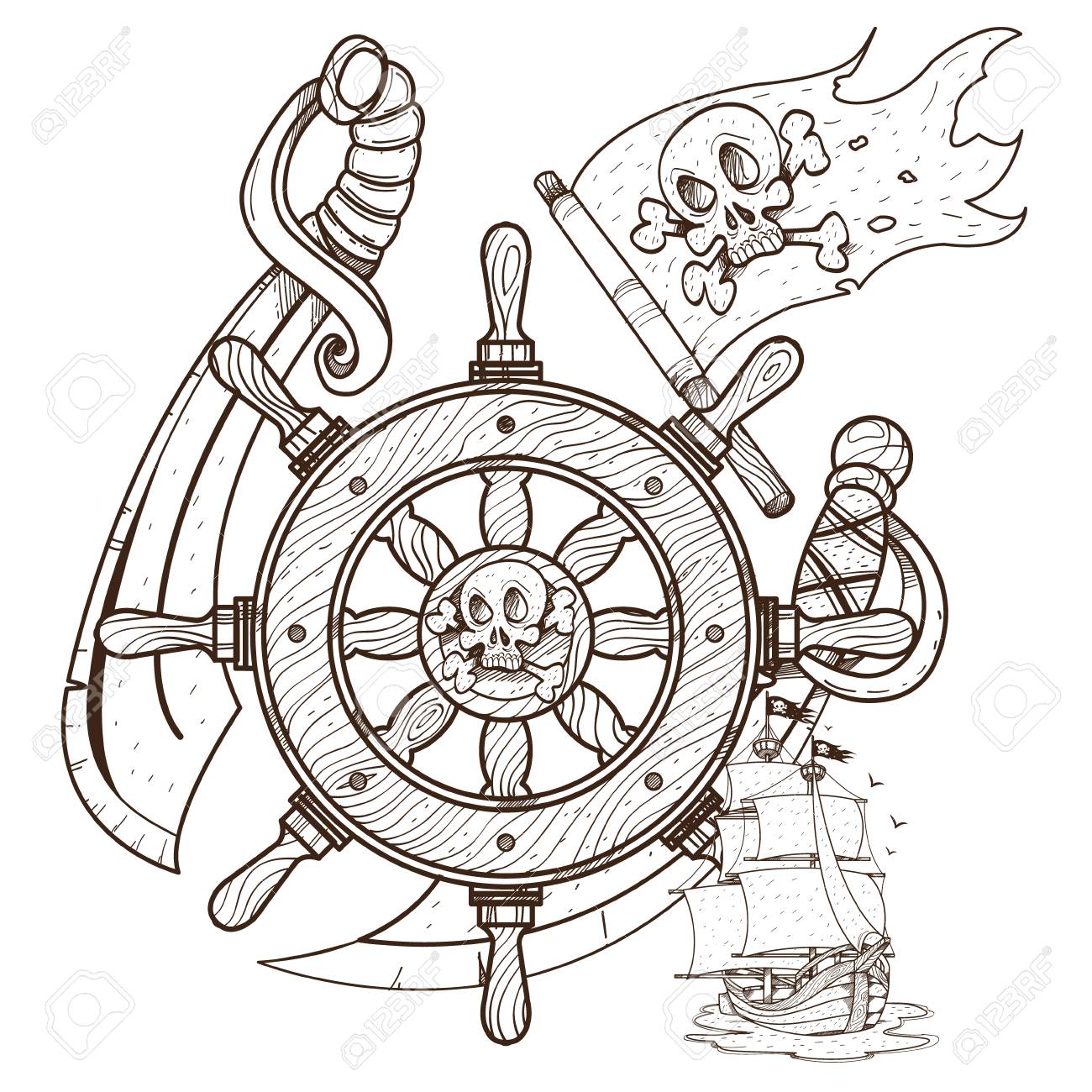 Image Of Steering Wheel Sword Jolly Roger Pirate Ship Graphics Pirate