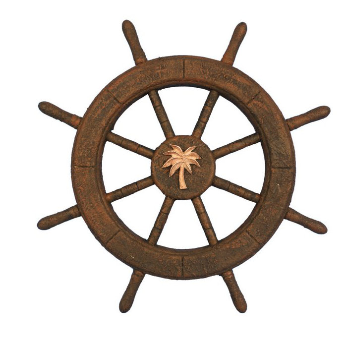 Image Of Decorative Ship Wheel With Palm Tree Wall Decor