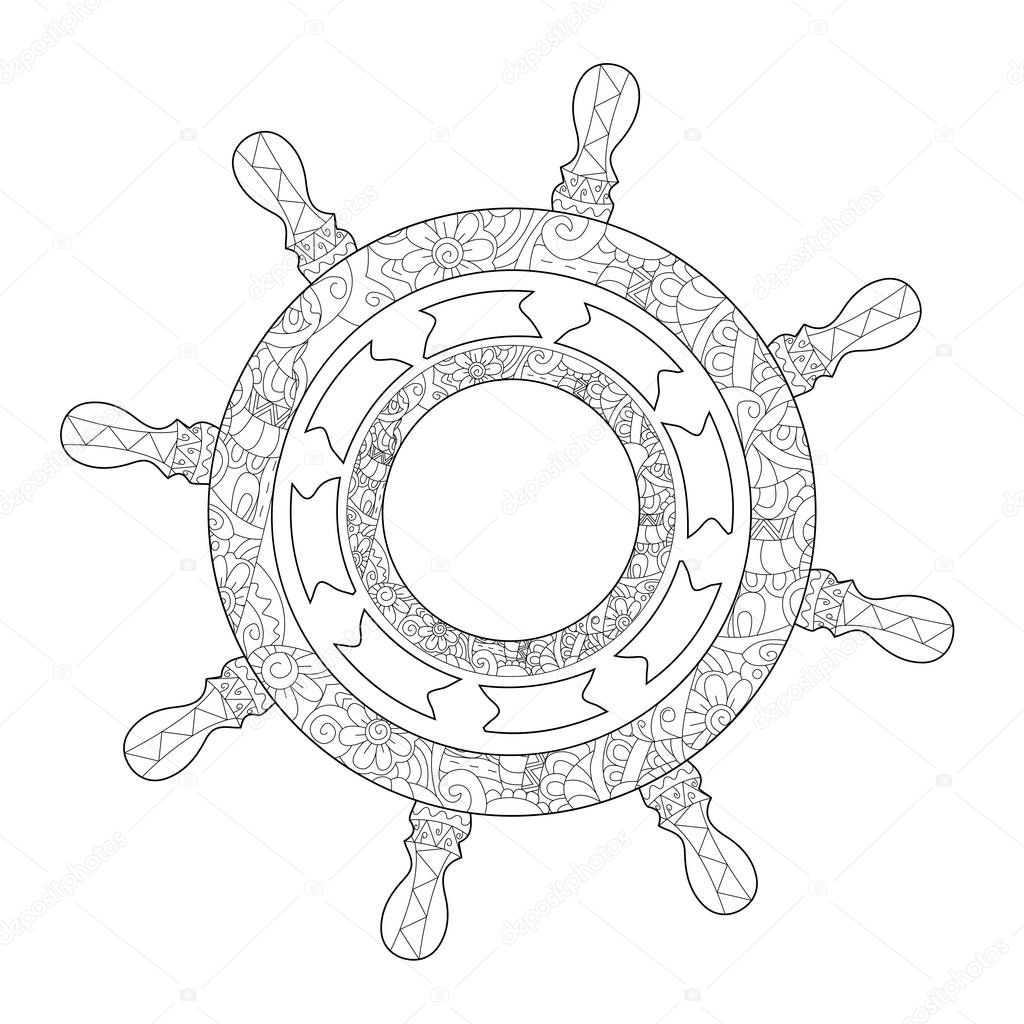 Image Of Pirate Ship Steering Wheel Coloring Book Vector For Adults