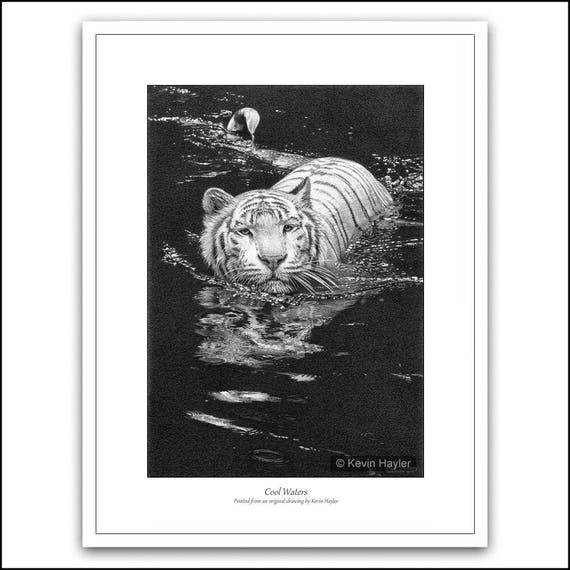 Image Of White Tiger Print Picture Snow Tigers Wildlife Big Cats Wall Art Animal Sketch B W Fine Art Graphite Pencil Drawing Signed Limited Edition