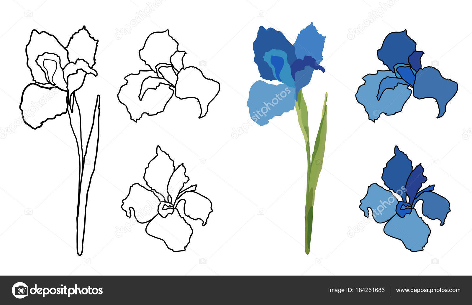 Image Of Hand Draw Line Vector Flowers Set Iris Card Logo Floral