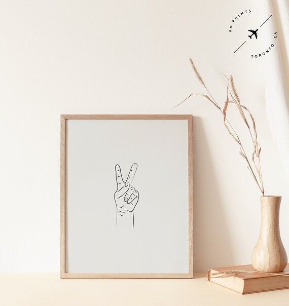 Image Of Peace Sign Fine Line Print Neutral Abstract Art Line Drawing Scandinavian Wall Art Poster Print Minimalist Printable Wall Art Decor