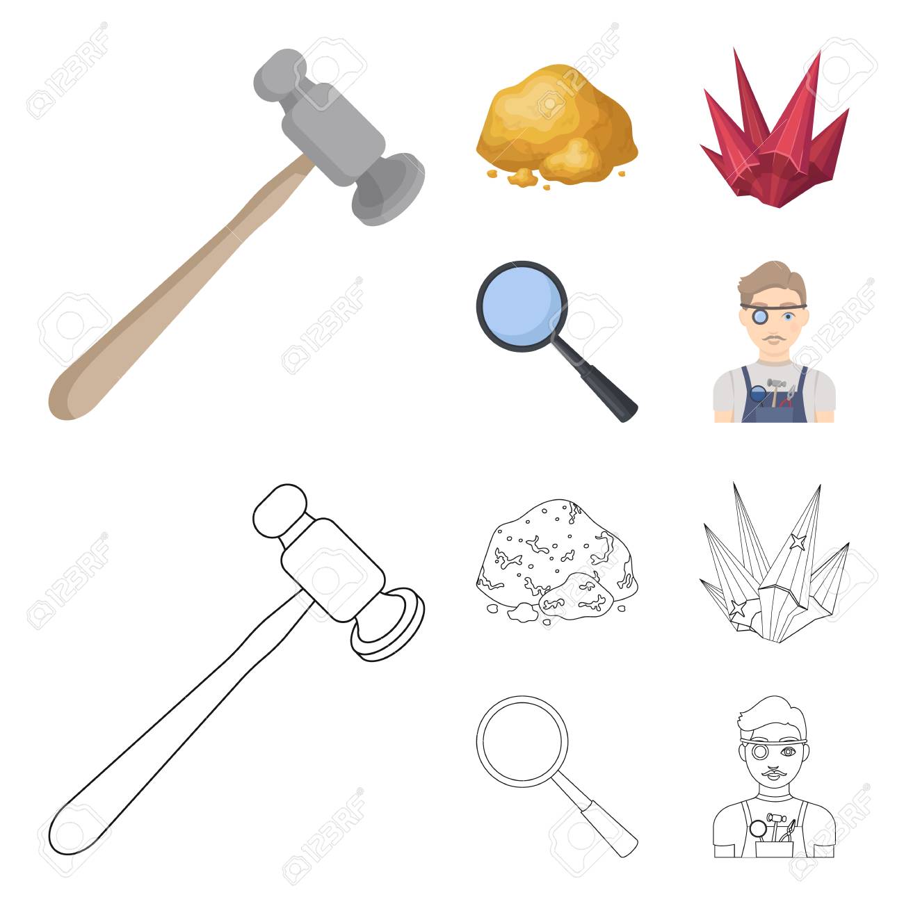 A Jeweler Hammer A Magnifier A Copper Ore A Crystal Precious