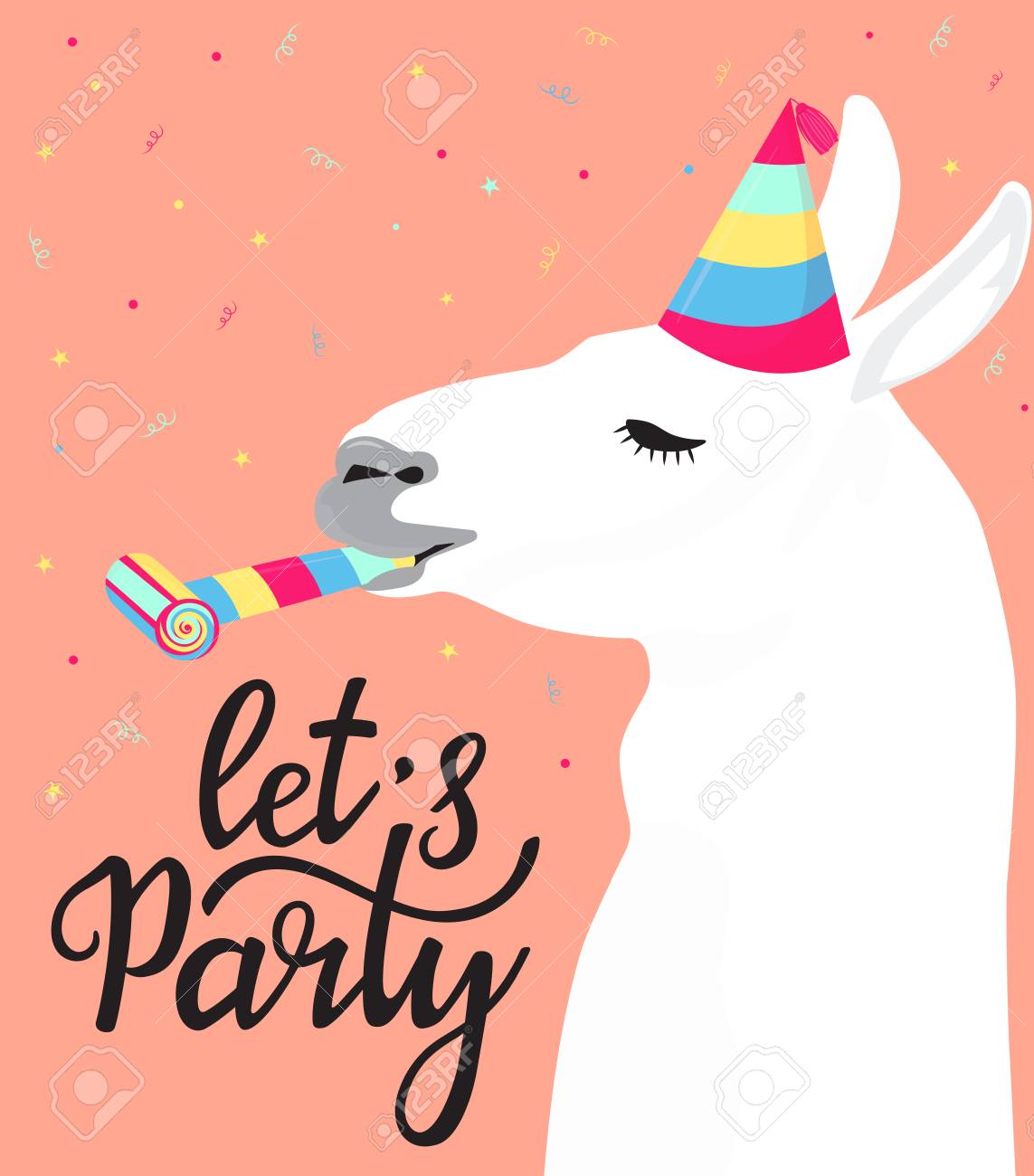 Fanny Llama In A Striped Hat With A Whistle Alpaca Celebrates