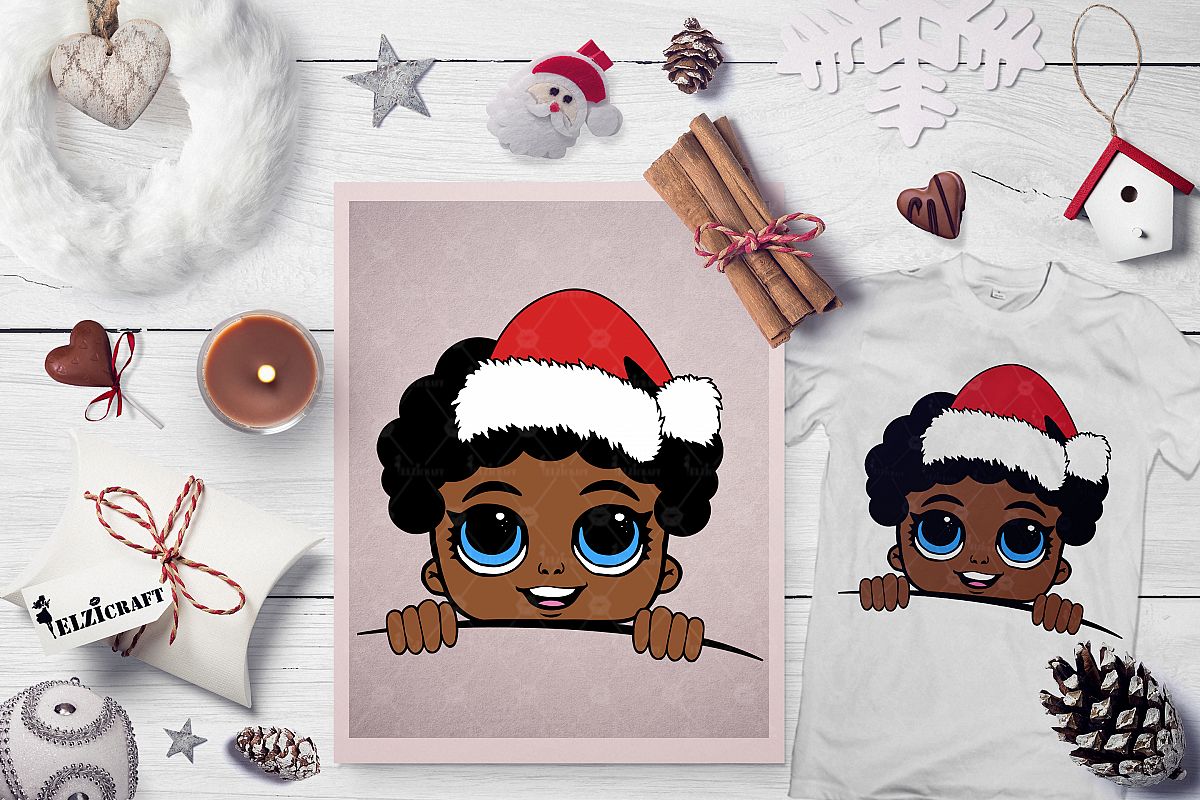 Image Of Christmas Cute Afro Boy Peeking Santa Hat Svg Cut File
