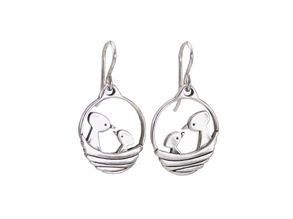 Image Of Sterling Silver Bird S Nest Earrings Mama And Baby Bird Charm Earrings Mother S Day Gift