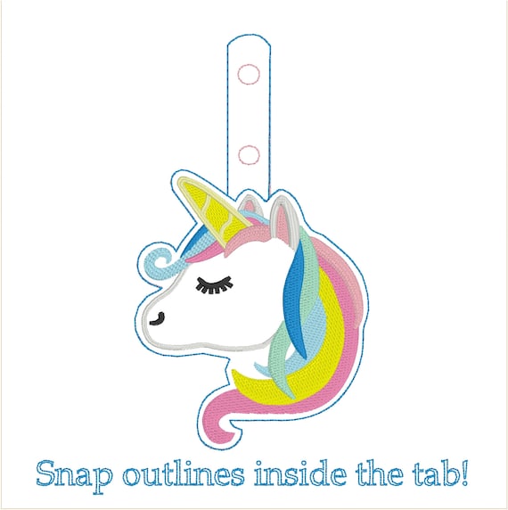 Image Of Unicorn Emoji Snaptab Ith Embroidery Design Snap Outlines Inside The Tab No Knots